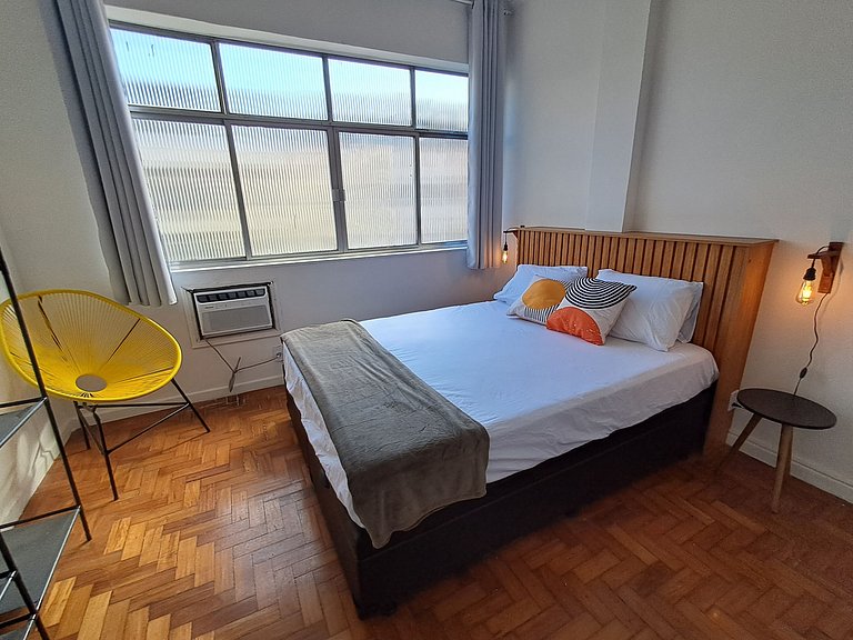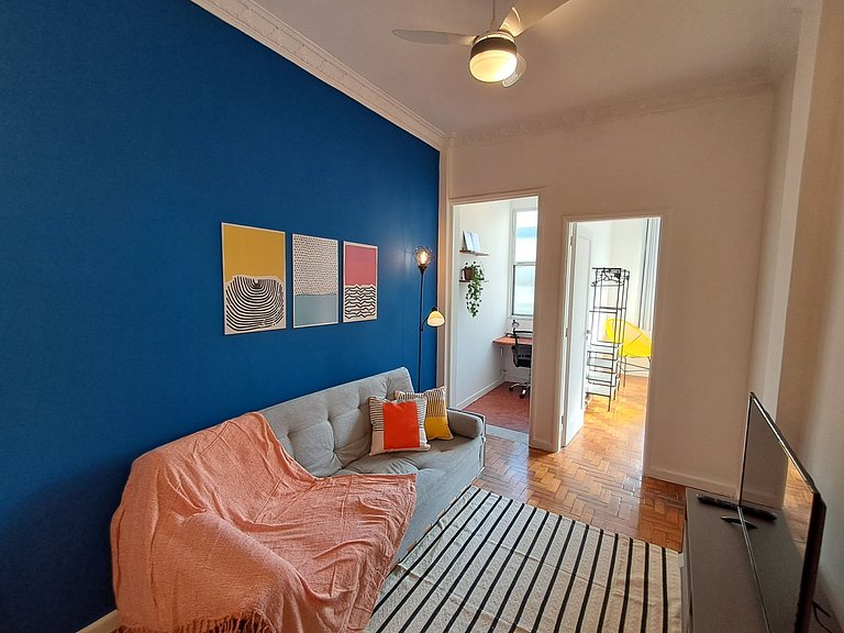 Apartamento redecorado quarto e sala, sendo 1 suíte. Localizado em "Copanema" a 2 quadras da praia de Copacabana e a 500m de Ipanema.